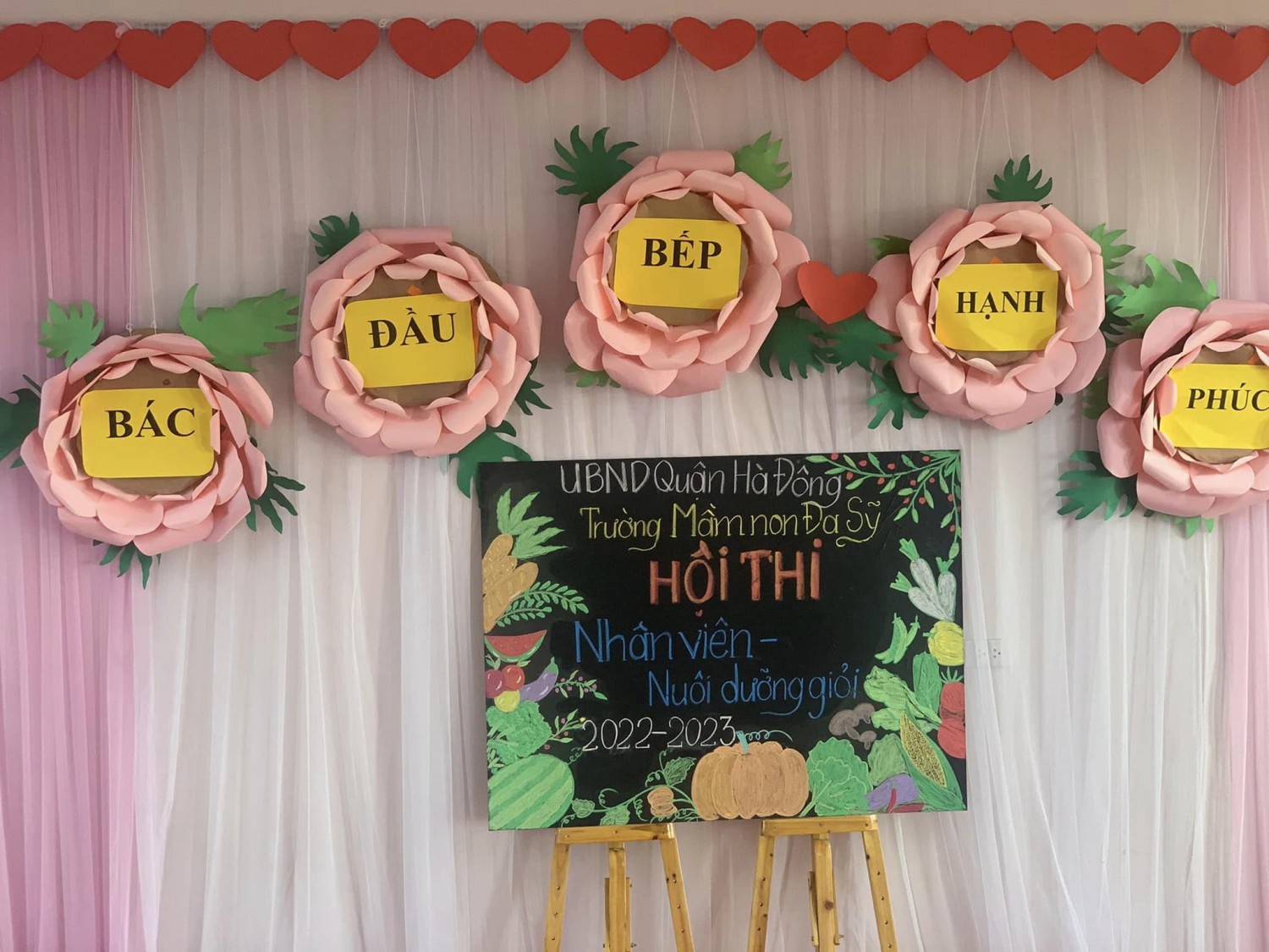 Hội thi nhân viên nuôi dưỡng giỏi năm học 2022 - 2023 đã diễn ra trong bầu không khí vui vẻ, hạnh phúc, được phụ huynh và các con đón nhận tham gia. Đây cũng là một hoạt động trải nghiệm của các cô bác đầu bếp, luôn muốn thay đổi, sáng tạo, nâng cao tay nghề trong kỹ thuật chế biến món ăn cho trẻ tại trường. Dưới đôi bàn tay khéo léo, nhiệt huyết, tài ba, các cô bác đã tạo ra nhiều món ăn ngon, bổ dưỡng, nhiều chất dinh dưỡng, kích thích vị giác của trẻ. Trẻ được nếm, thưởng thức từng món ăn, ăn rất ngon miệng. Và dưới đây là một số hình ảnh đẹp của hội thi: